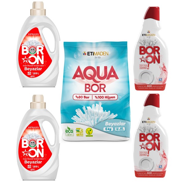 Boron Doğal Mineralli Sıvı Beyazlar x2 + Renkliler x2 + Jel Bulaşık Makinesi x2 + Elde Bulaşık x2