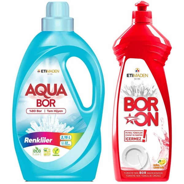 Eti Maden Aquabor Doğal Sıvı Çamaşır Deterjanı Renkliler Için 33 Yıkama+Bulaşık Deterjanı 820 ml