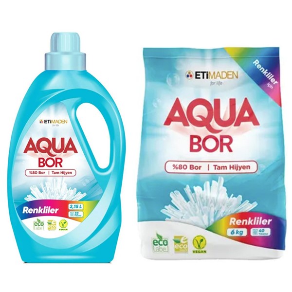 Aquabor Çamaşır Deterjanı Renkli ve Beyazlar 66 Yıkama+ Bulaşık Makinesi Deterjanı 82 Yıkama