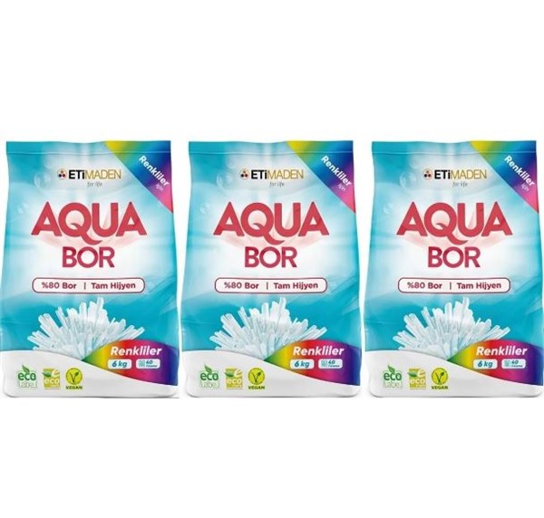 Aquabor Matik Toz Çamaşır Deterjanı 18kg (RENKLİLER IÇİN) 120 Yıkama (3PK*6KG)