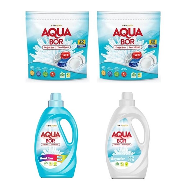 Boron Aqua Bor Bulaşık Makinası Tablet + Elde Bulaşık + Renkli toz + Beyaz Sıvı